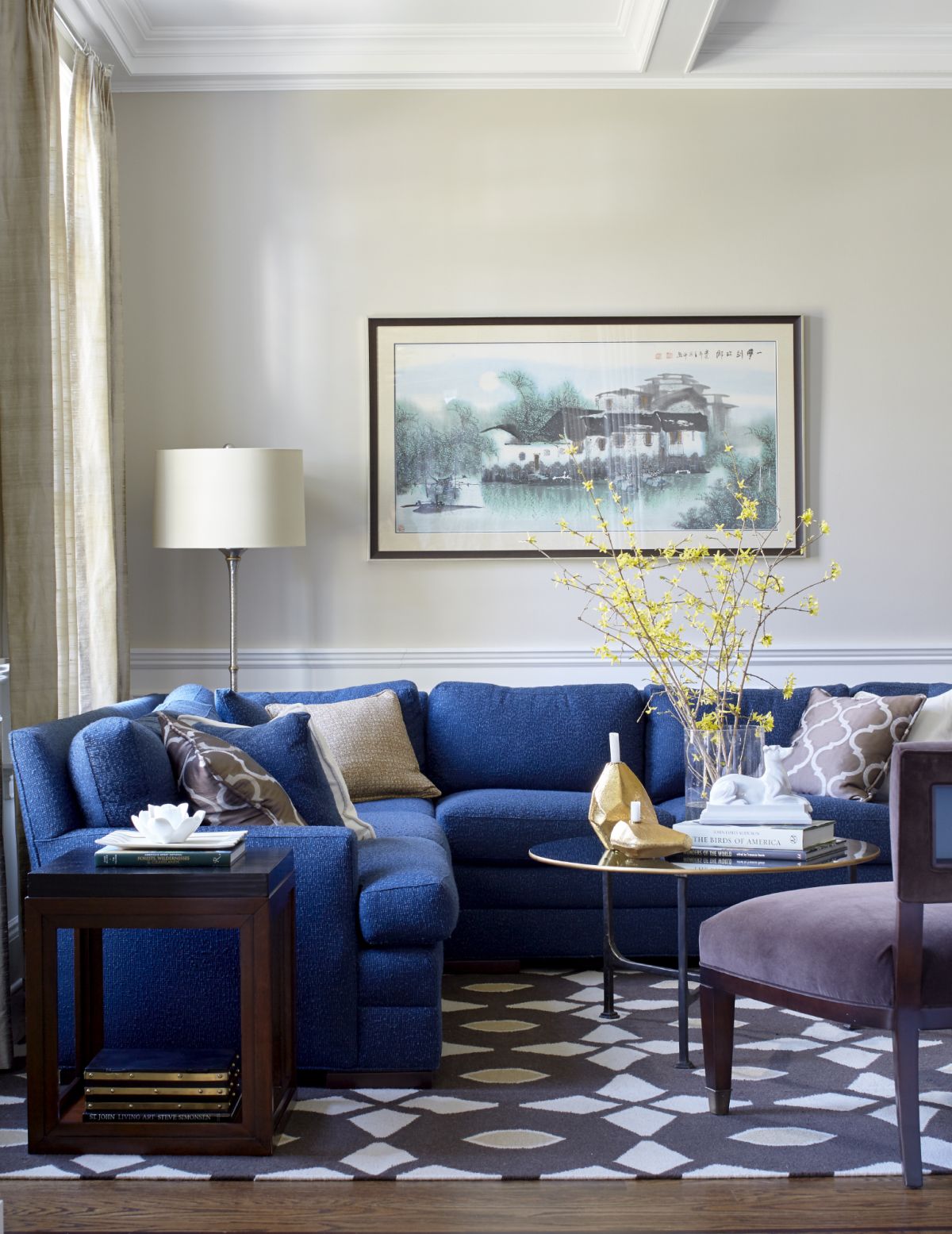 Blue furniture can anchor a room and provide a strong visual statement.