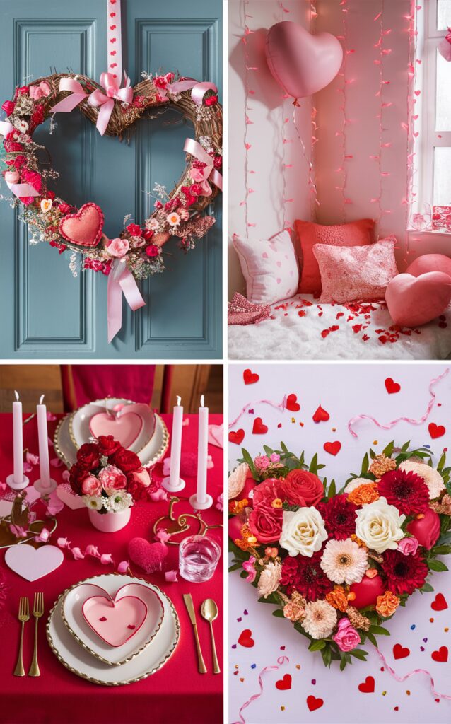 - Door Decor: A simple wreath adorned with faux flowers (roses are a classic!), velvet ribbons, or even a cluster of heart-shaped ornaments can set the tone.